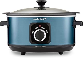 Morphy Richards Accents 3.5L Sear & Stew Slow Cooker, Shatter Resistant Non Stick Aluminium Pot, Single Pot Cooking, Compact, 3 Heat Settings, Hob Proof, Glass Lid, Easy Clean, 163W, Blue, 460023