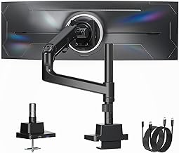 monTEK Heavy-Duty Single Monitor Arm for 17-57 inch, Load 27kg Ultrawide Screens, Gas Spring Curved Adjustable Monitor Stand for Desk, 75/100mm VESA Mount with USB, Black