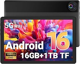 Gleeso Tablet|Android 16 Tablet 10 Inch|16GB RAM 1TB TF Android Tablets with Face Unlock|Widevine L1|BT 5.4/5G WiFi|5MP Dual Camera, OTG Tablet PC - Black